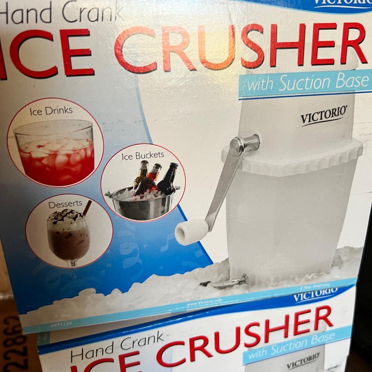 2 hand and 2 electric ice crushers. All 4 are new in boxes. NOTE: PICK UP ONLY IN DUNKIRK MD.