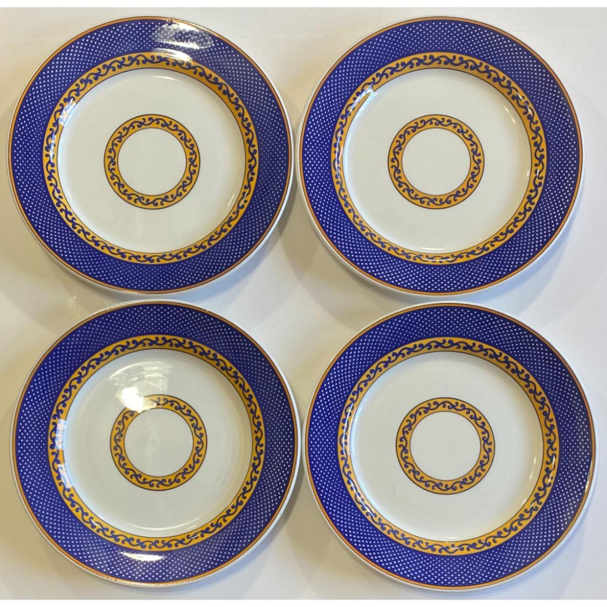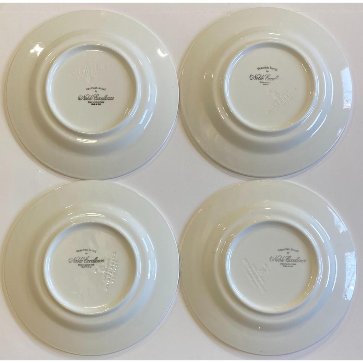 4 Noble Excellence Venetian Scroll Ceramic Dinner Plates Made In Italy - A