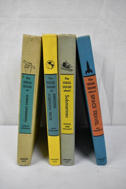 4 Non-Fiction/Informational Hardcover Books "The Real Book about..." Science Experiments, Scientific Facts, Submarines, Space Travel. Vintage 1954