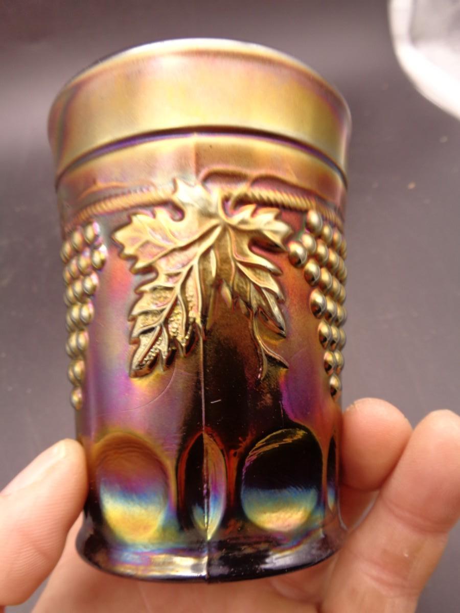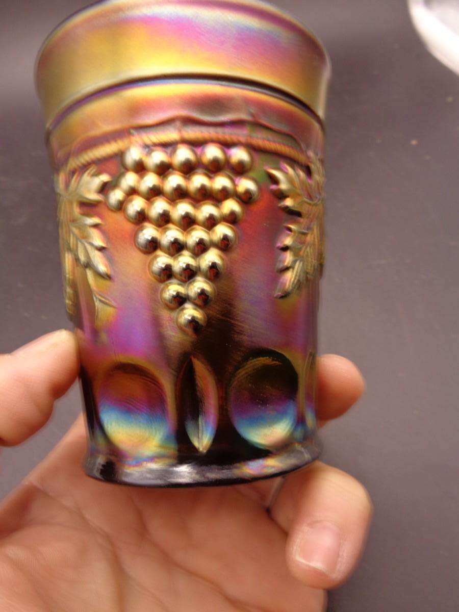 4" Northwood Amethyst Carnival Glass Tumbler "Grape & Cable" #90