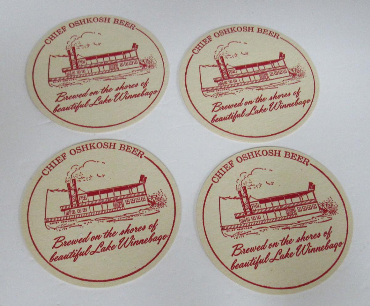4 Old Chief Oshkosh Beer Coasters, Nice Unused Shape