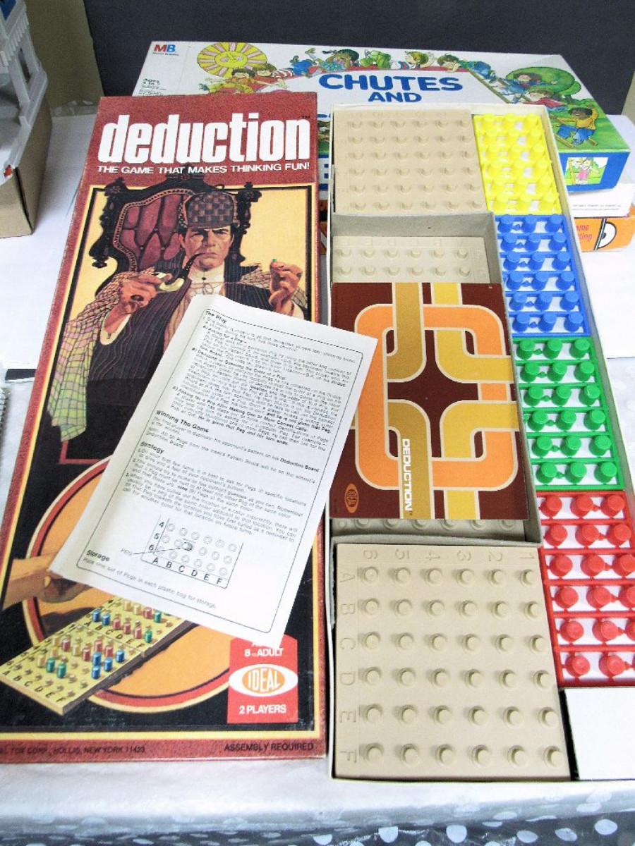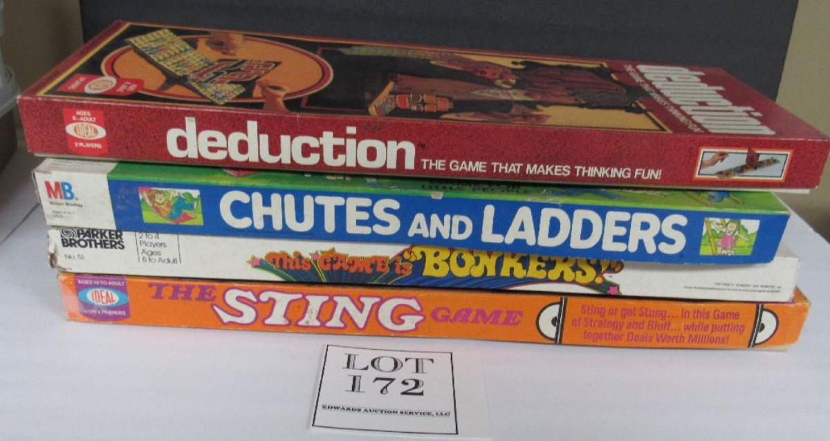 From well used to good. Deduction and Sting appear complete and some parts never taken apart yet. But the boxes are warped and bent. Chutes and Ladders looks complete, the other may have a few pieces missing.