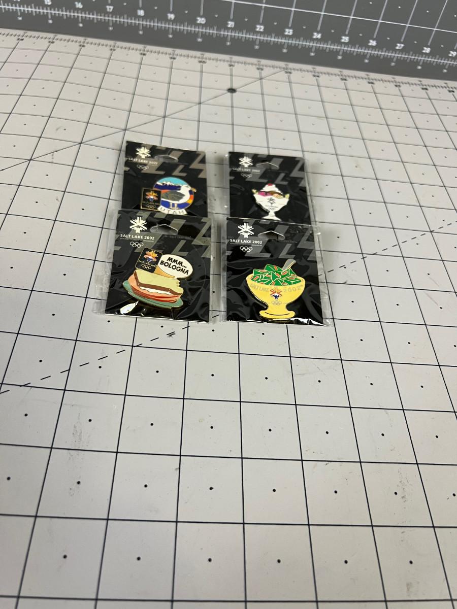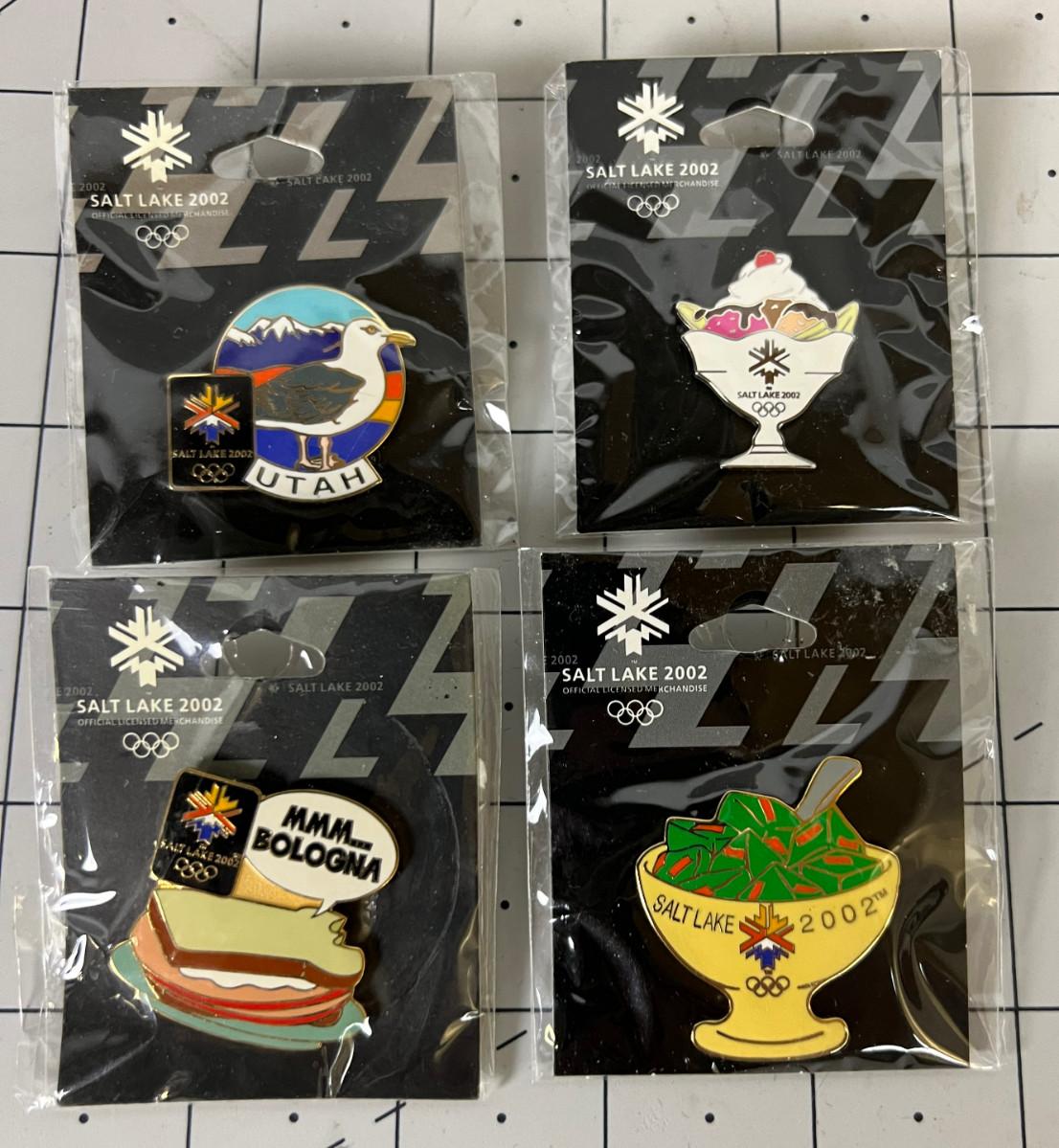4 Olympic Pins: Ice Cream, Jell-O, Bologna