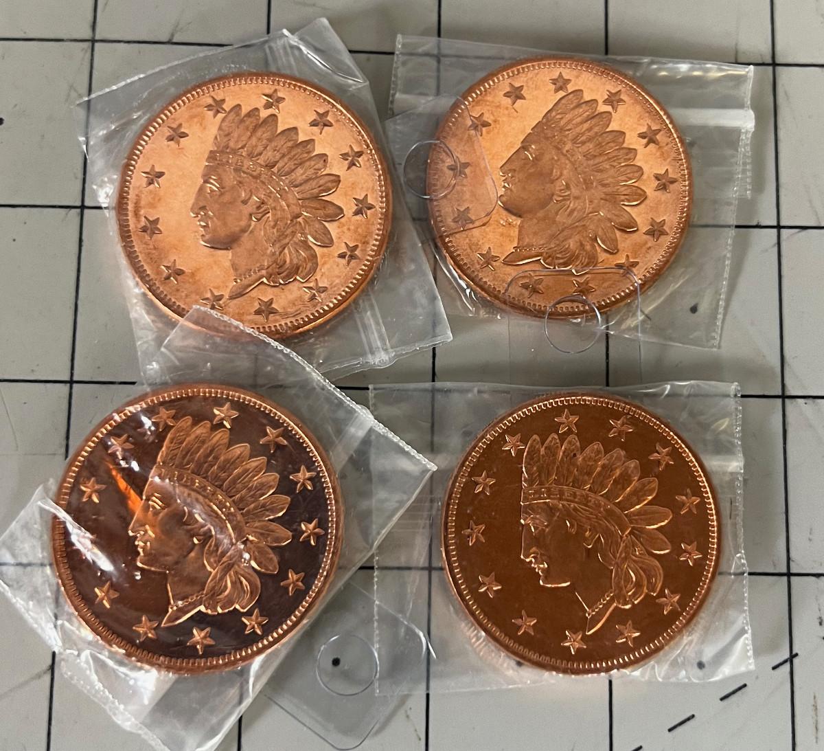 (4) One Ounce Indian Heads in Copper
