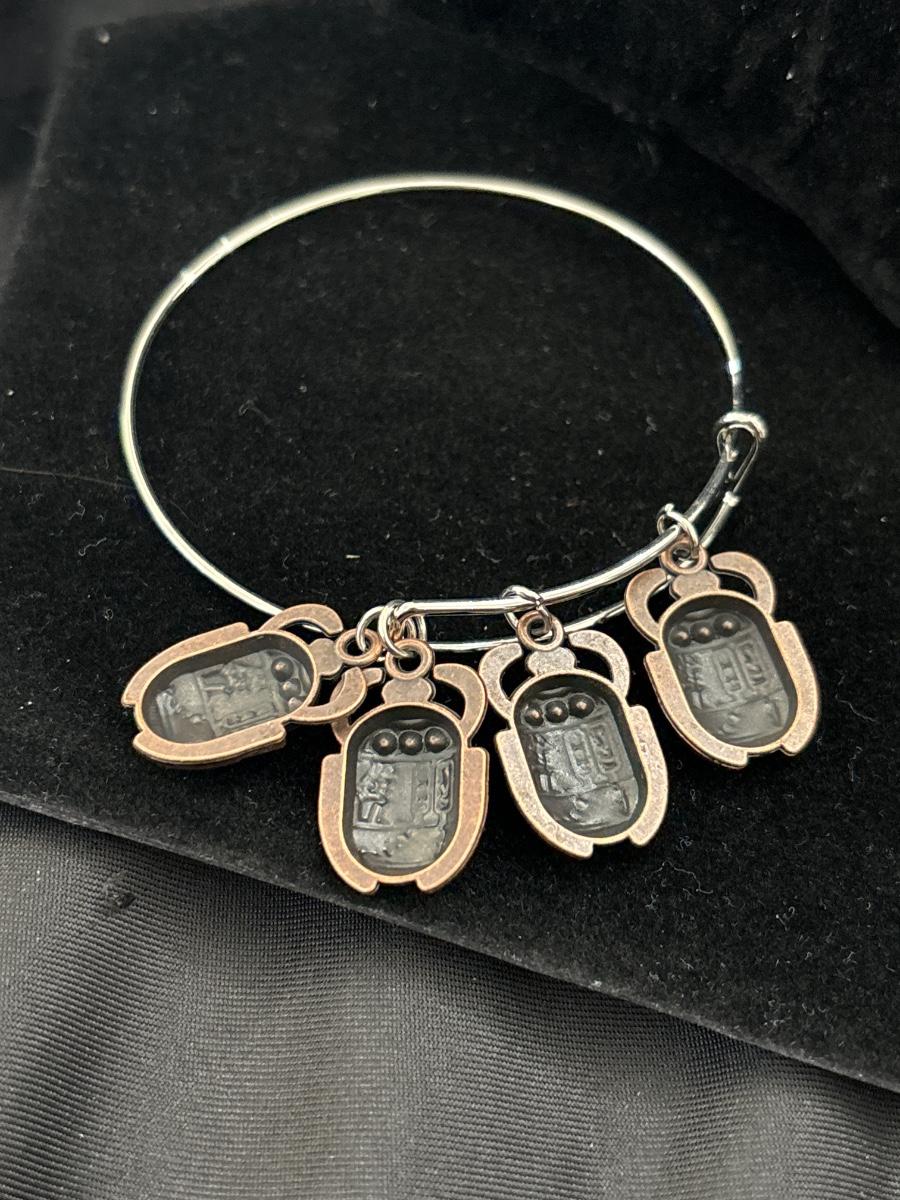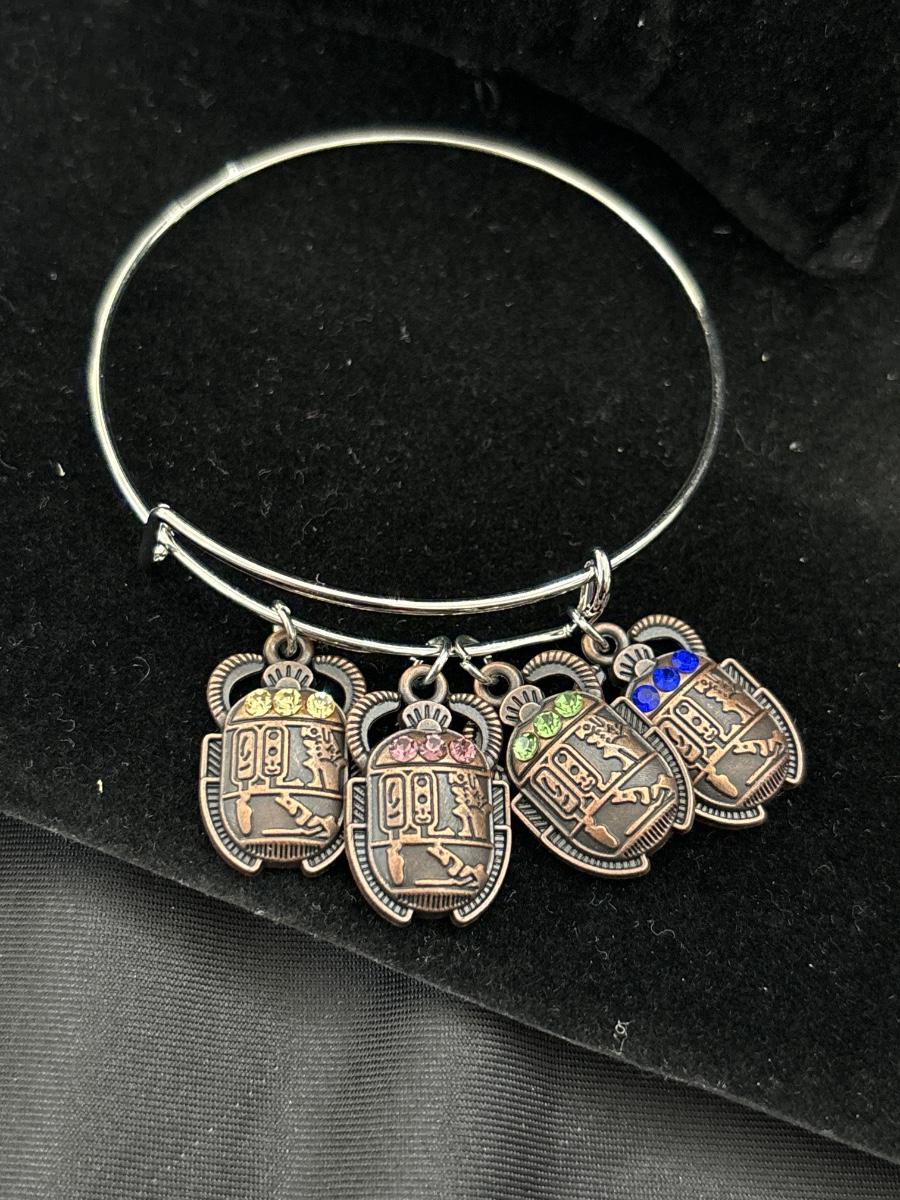 4 only Scarab Bangle Copper Scarab Beetle Bracelet Yellow Rhinestone Scarab Charm Bracelet Stackable Bangle
