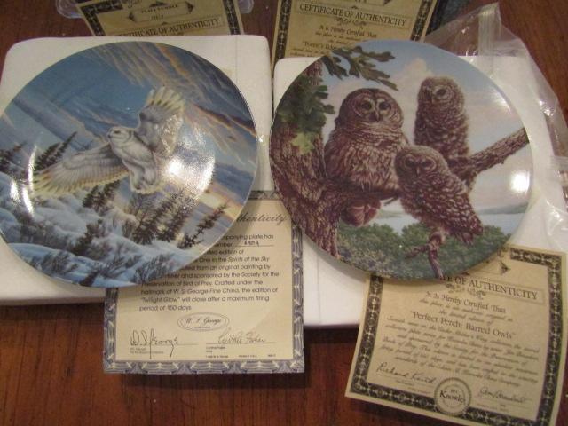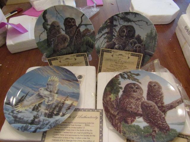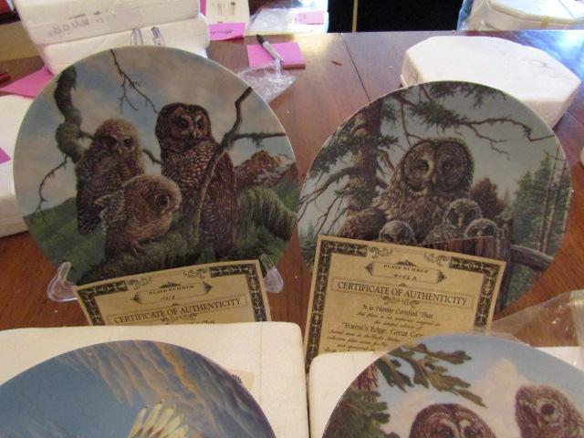 4 Owl Theme Collectible Plates- with boxes and COAs