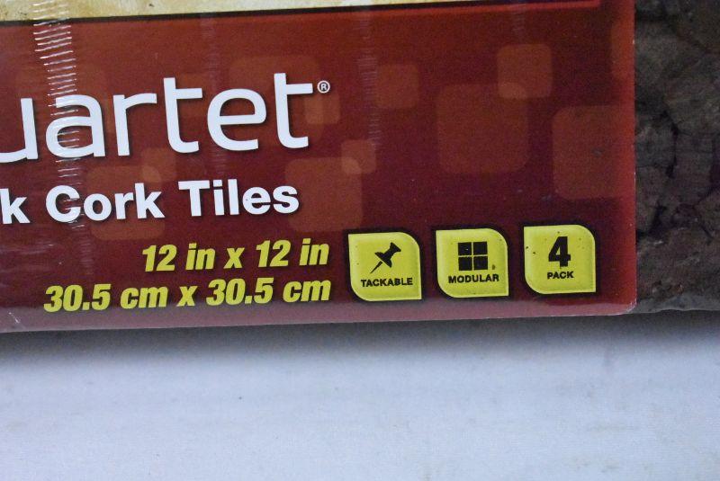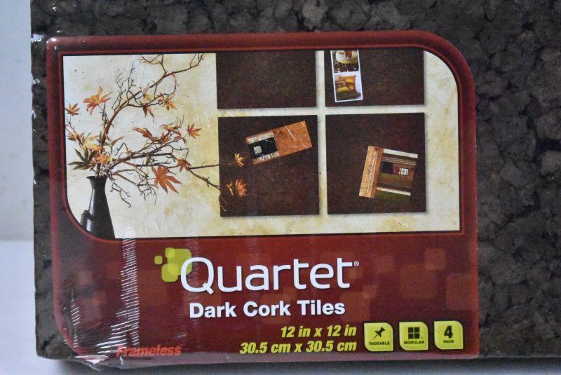 4 Pack Quartet Modular Dark Cork Tiles, Frameless, 12" x 12" - New