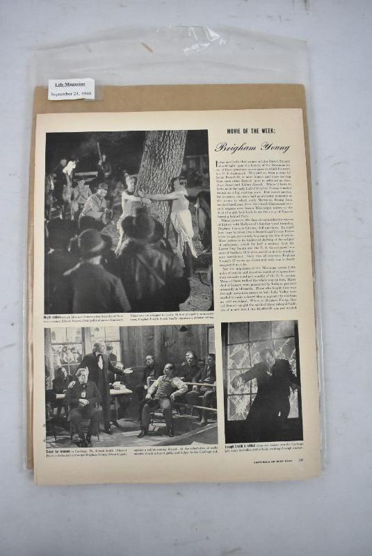4 Pages from Life Magazine September 23, 1940: Movie of the Week: Brigham Young