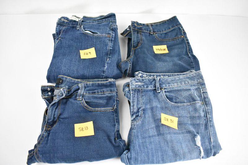 4 Pair of Women's Jeans: Levi Size 9, Maurices Size Med, Hope Jeans Size 13, Articles of Society Size 31