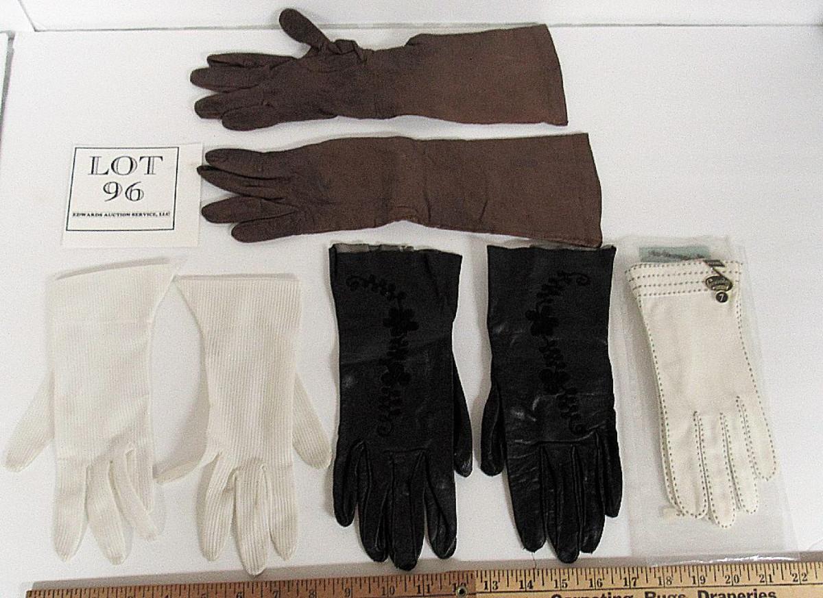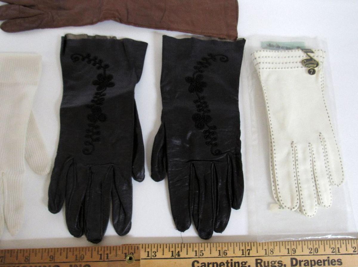 4 Pair Vintage Ladies Gloves, 2 Leather, 1 MIP Crescendo Sant' Angelo Never Used In Original Package