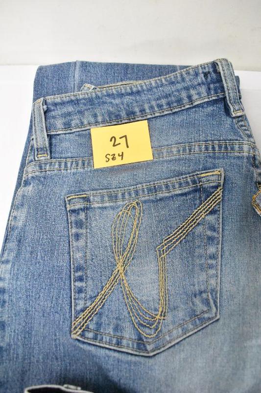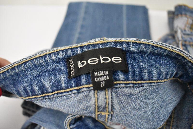 4 Pair Women's Jeans: Bebe Sz 27, Miss Chic Size 5, Lucky Size 6/28, Gap 8 Tall