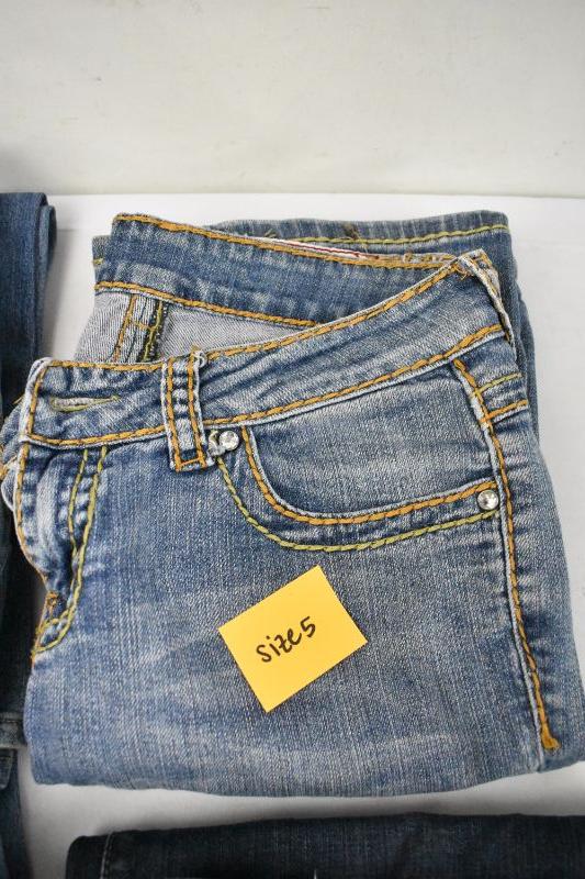 4 Pair of Women's Jeans: Bebe Size 27, Miss Chic Size 5, Lucky Size 6/28, Gap 8 Tall