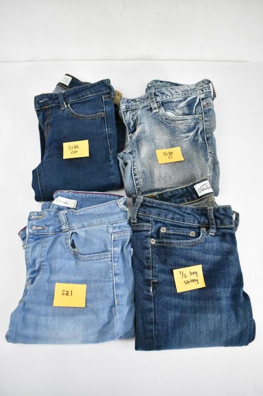 4 Pair Women's Jeans: Hollister Sz 00, Rue 21 Sz 0, Cello Size 1, Aero Size 1/2