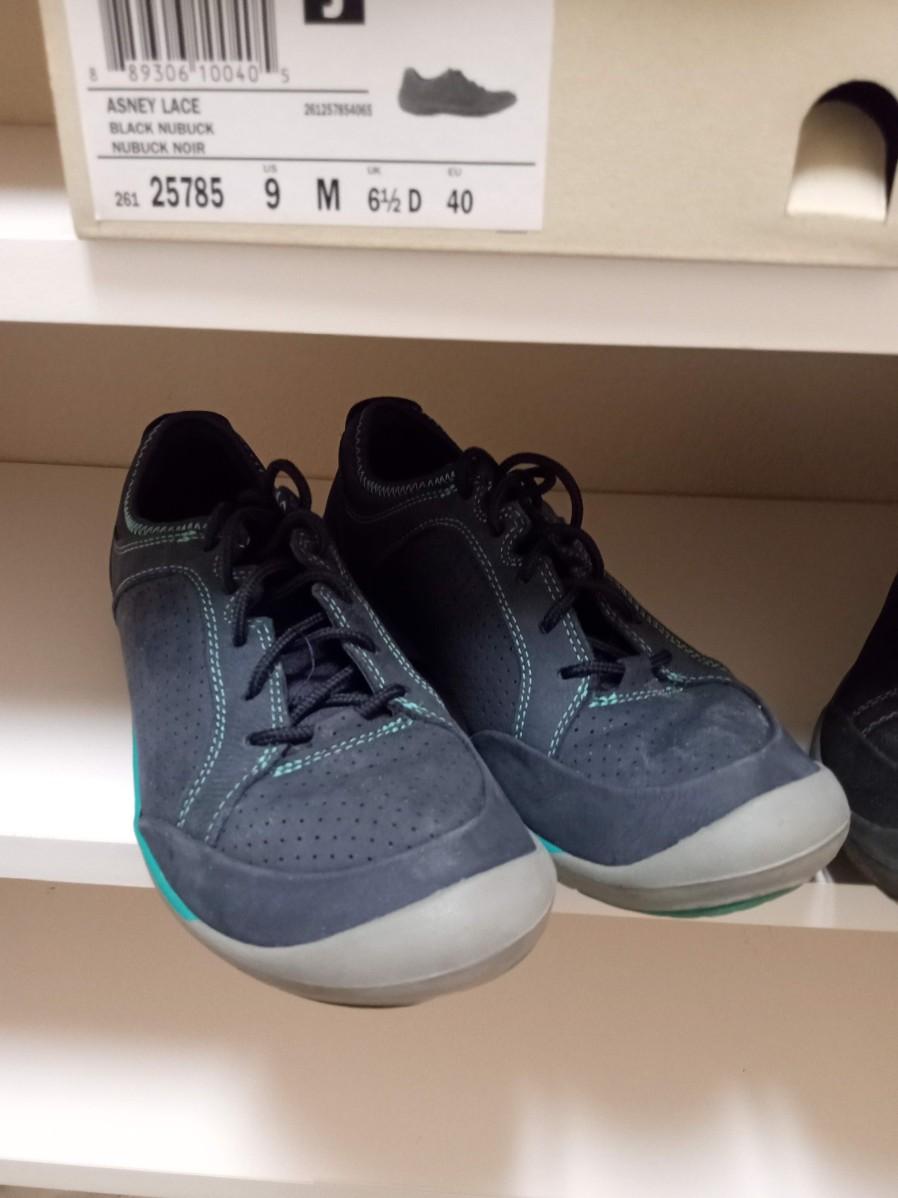 2 PAIRS OF CLARKS "ASNEY LACE" BLUE AND BLACK SIZE 9 LIGHT WEAR