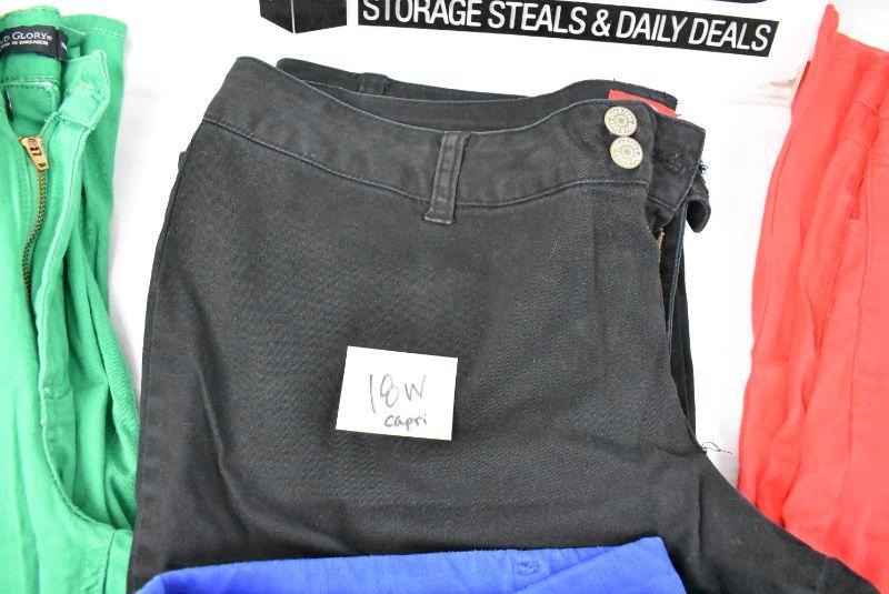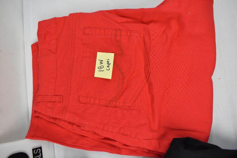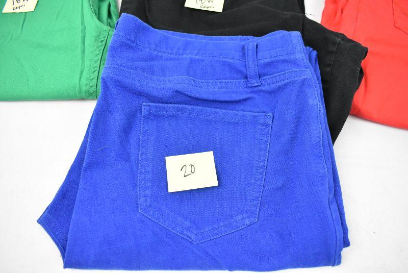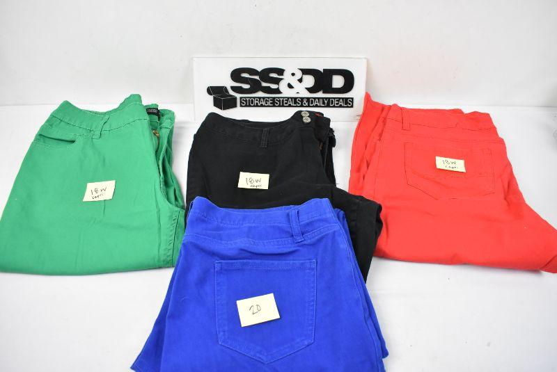 4 pairs of Women's Capris & Pants: 18W Green Capri, 18W Black Capri, 18W Red Capri. & 20 Blue