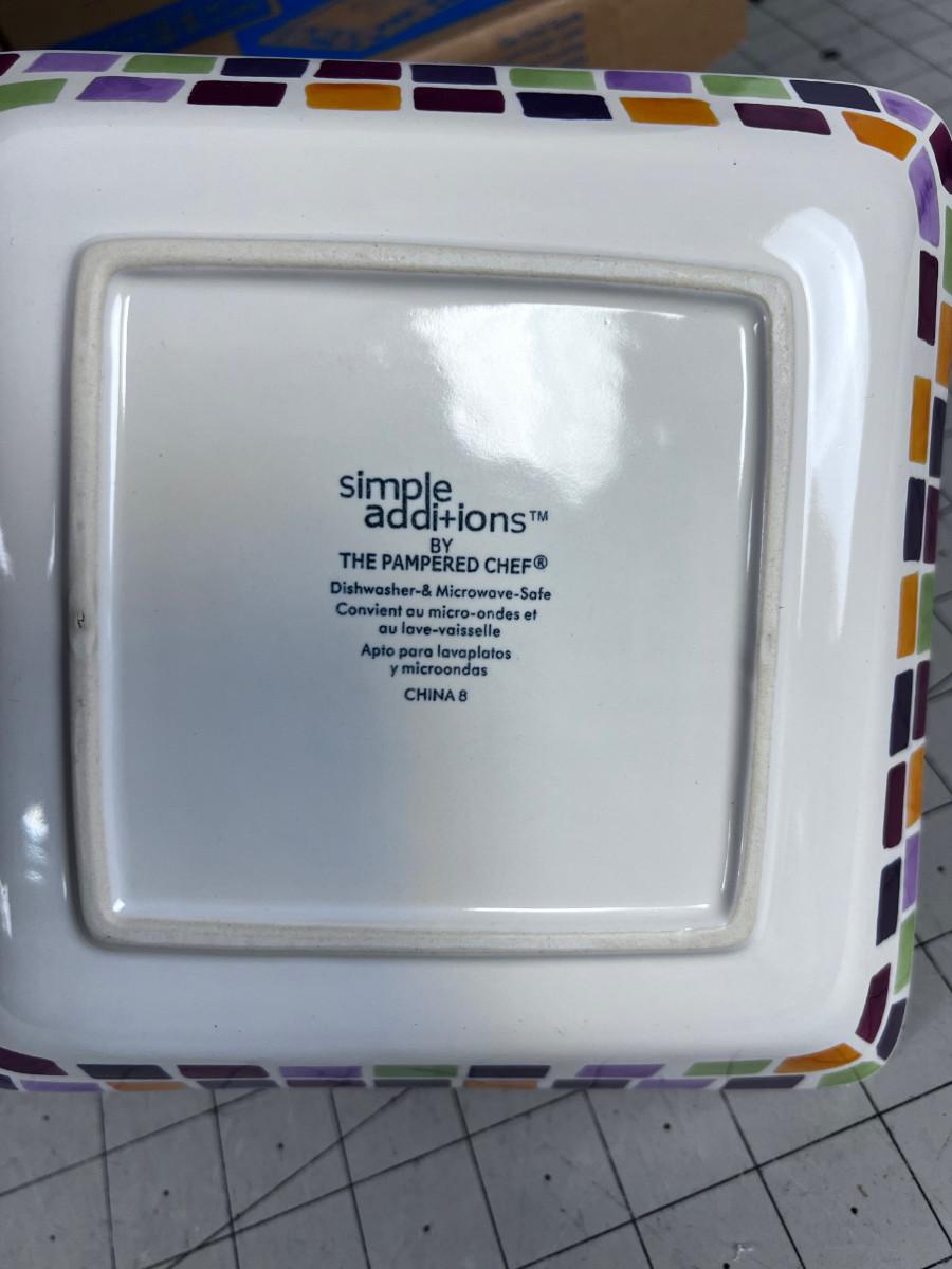 4 Pampered Chef "Title Square" NEW in the Box Plates