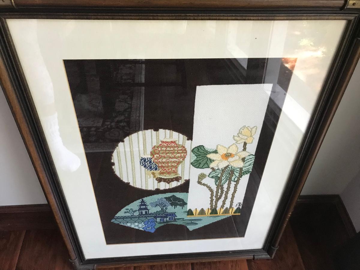 4 PC ASSORTED FRAMED NEEDLEPOINT ART
