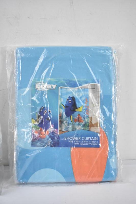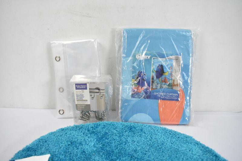 4 Pc Bath Lot: Finding Dory Shower Curtain, Liner, Hooks, & Lid Cover - New