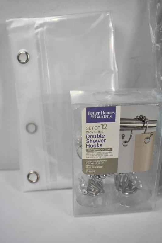 4 Piece Bathroom Lot: Finding Dory Shower Curtain, Clear Curtain Liner, 12 Shower Hooks, & Universal Lid Cover - New