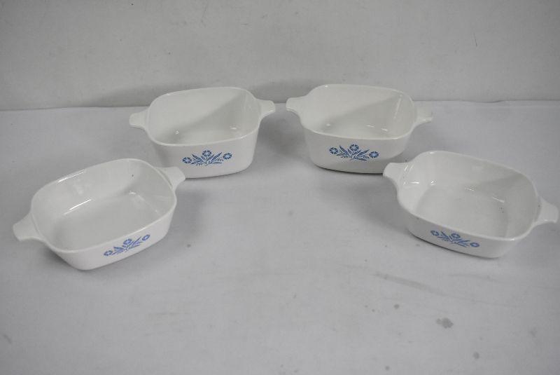 4 Pc Blue Cornflower Vintage Corning Ware Baking Dishes: 1 3/4 Cup & 2 3/4 Cup