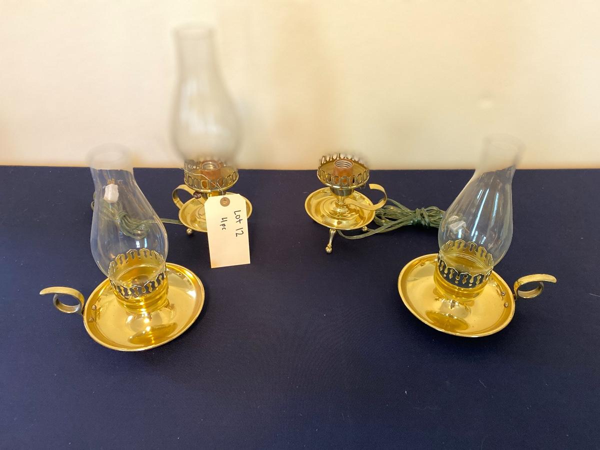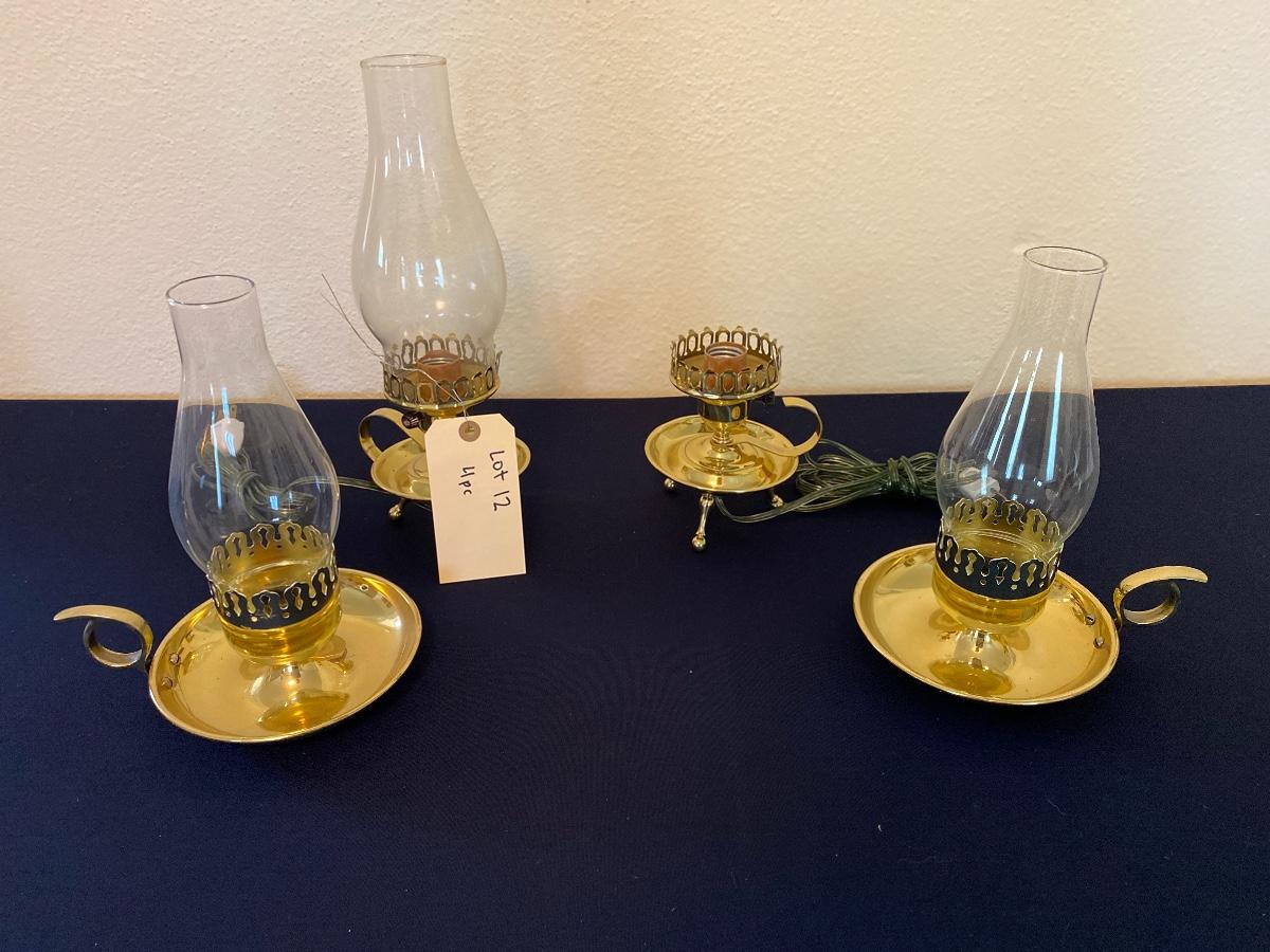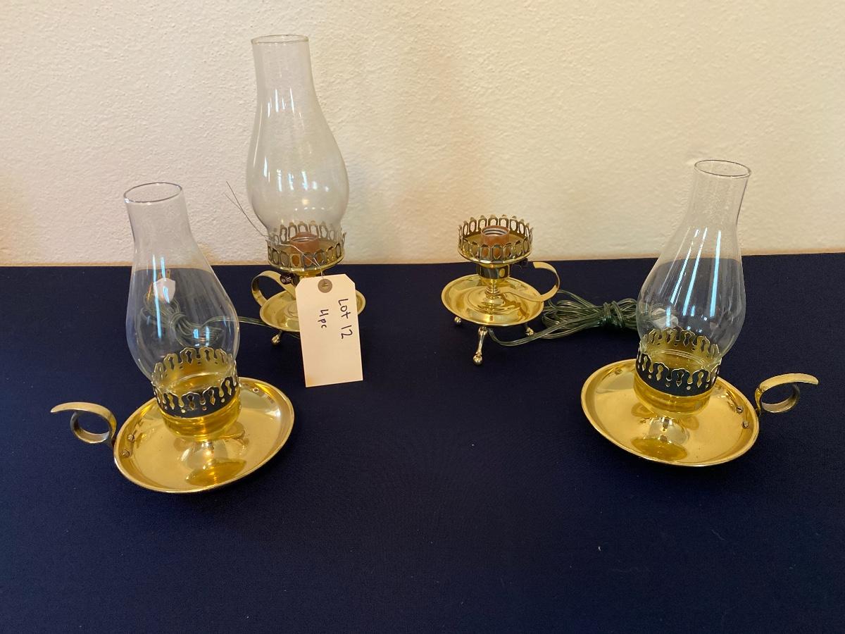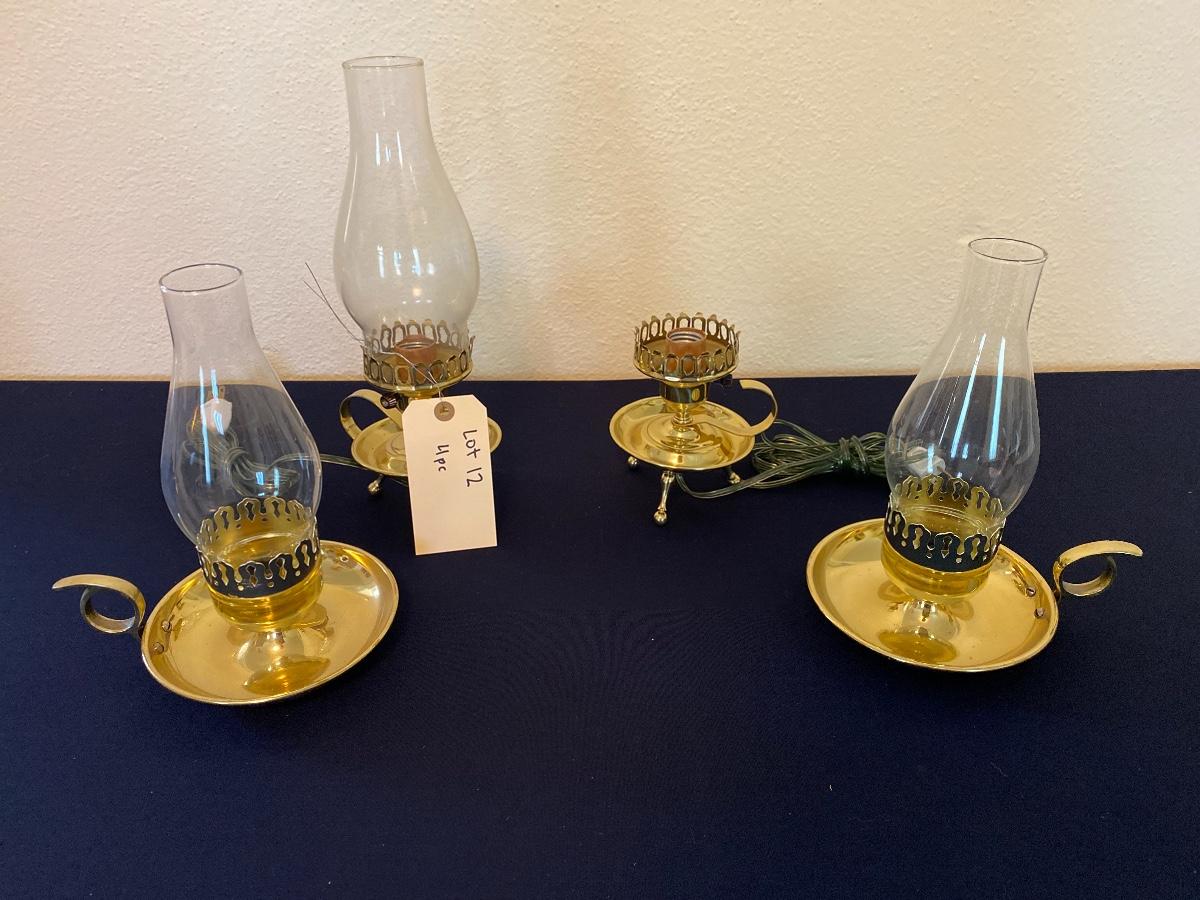 Pr of Brass Hurricane Globe Lamps (Missing 1 Globe) Pr of Brass Hurricane Candle Stick Globes