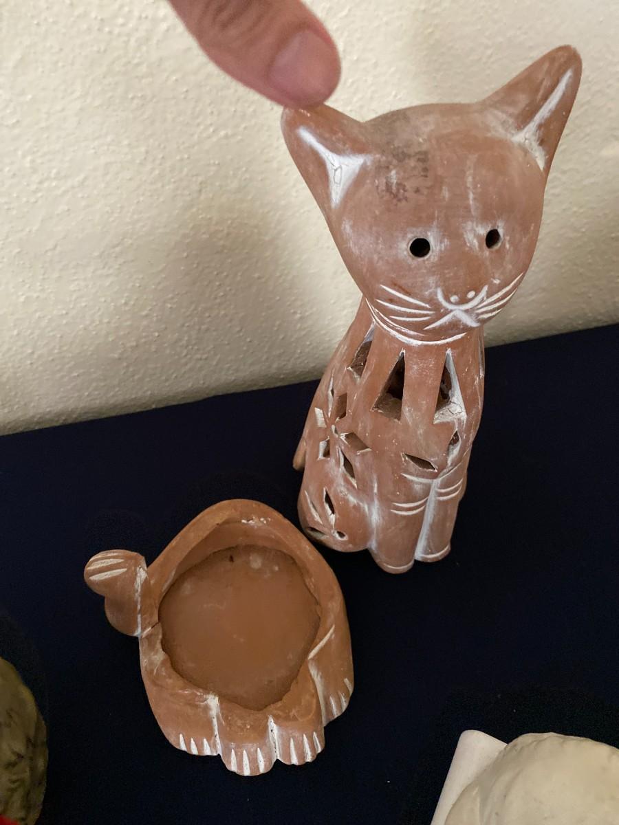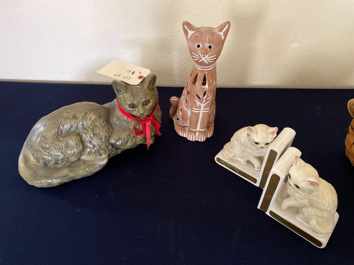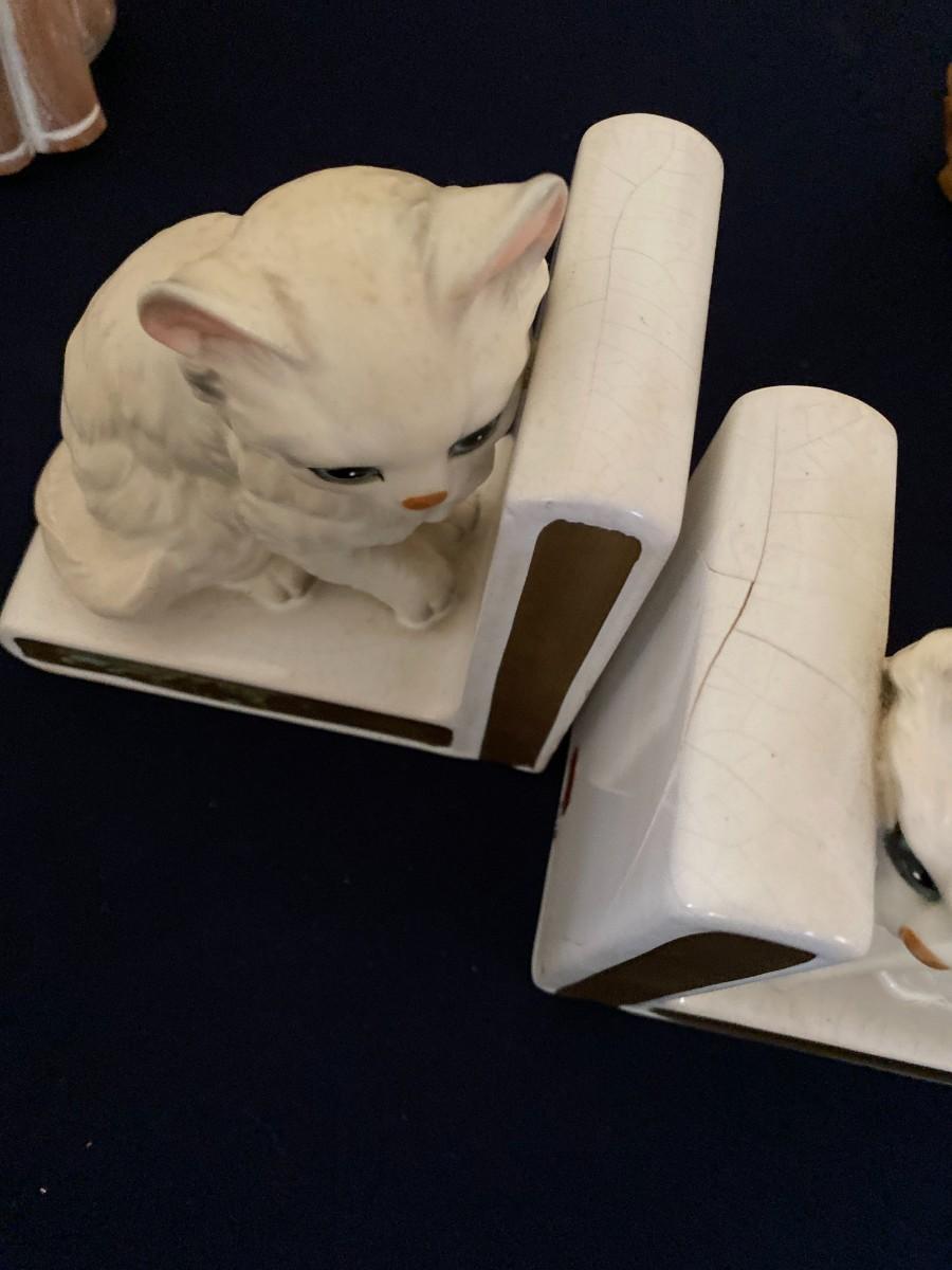 Book Ends, Candle Holder, Decorative Cat, One Book End Has Been Repaired