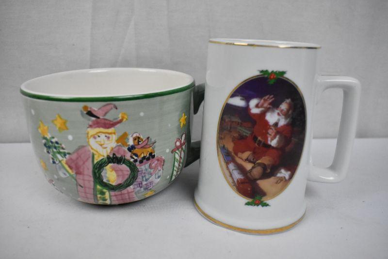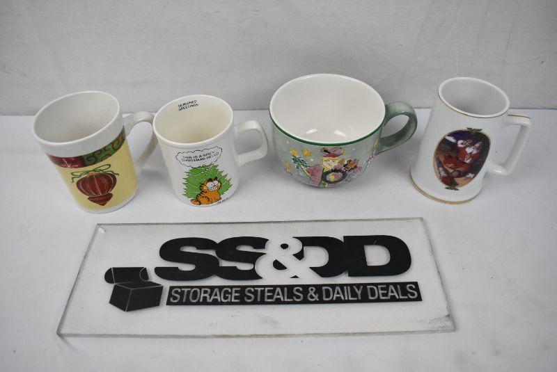 4 pc Christmas Holiday: 3 coffee cups, 1 bowl