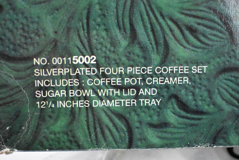 4 pc Coffee Set, Silver Plated, Needs Cleaning, Includes Box, Vintage 1997