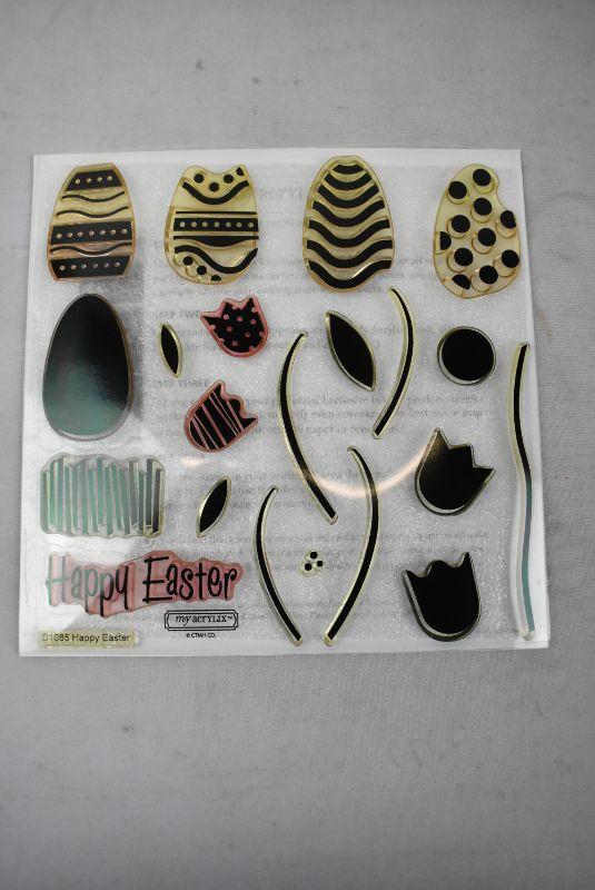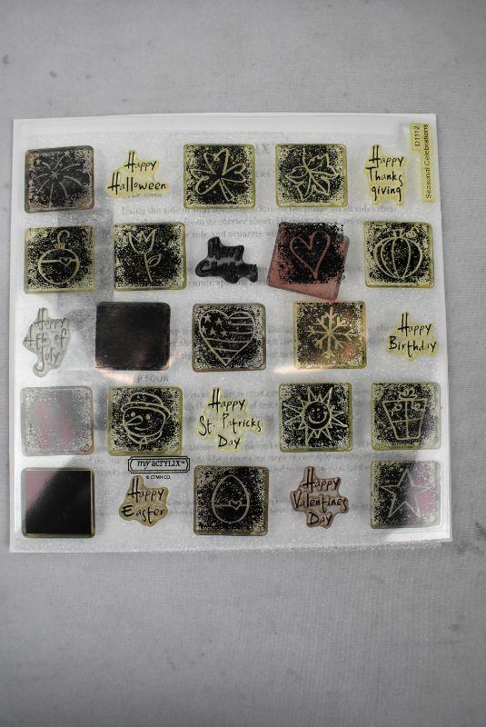 4 pc Crafting by Close to my Heart: 1 Window Charms Accessories & 3 Stamp Sets: Happy Easter, Seasonal Celebration, & Shadow Sentiments