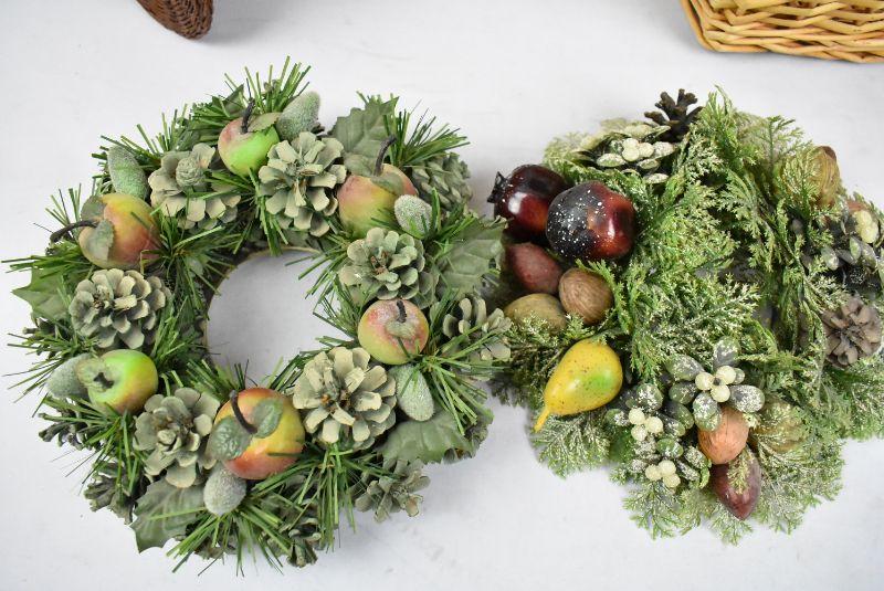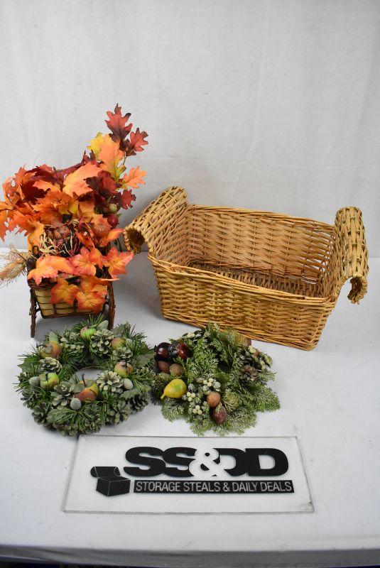 4 pc Fall Decor: 2 Baskets, 2 candle wreaths