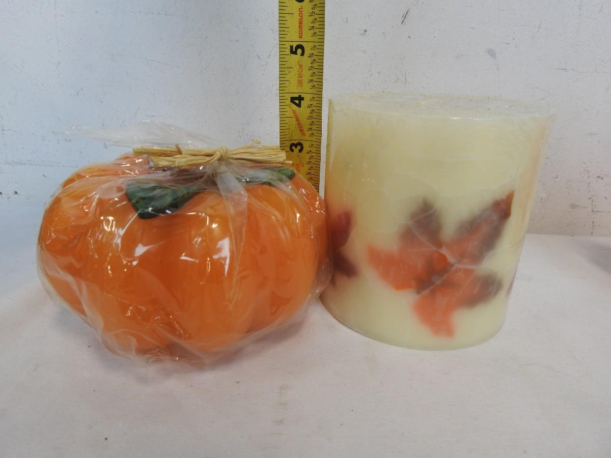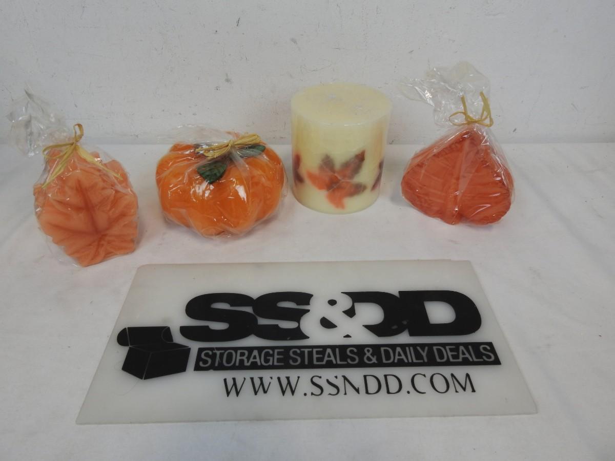 4 pc Fall Theme Candles, Leaves & Pumpkin - New