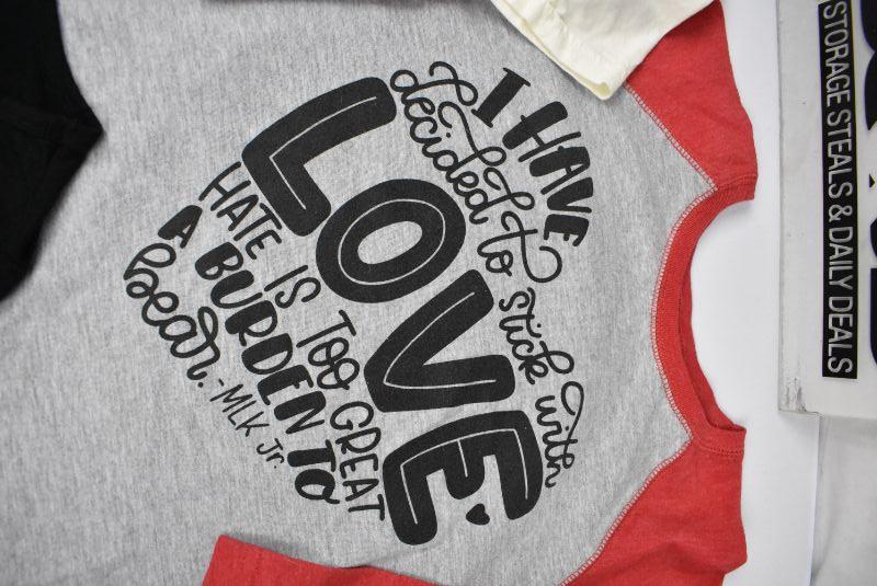 4 pc Girls Shirts sizes 10/12/14: LuLaRoe Gracie Gray/Red, Minnie Mouse Light Yellow, MLK Jr Gray/Red, & Black