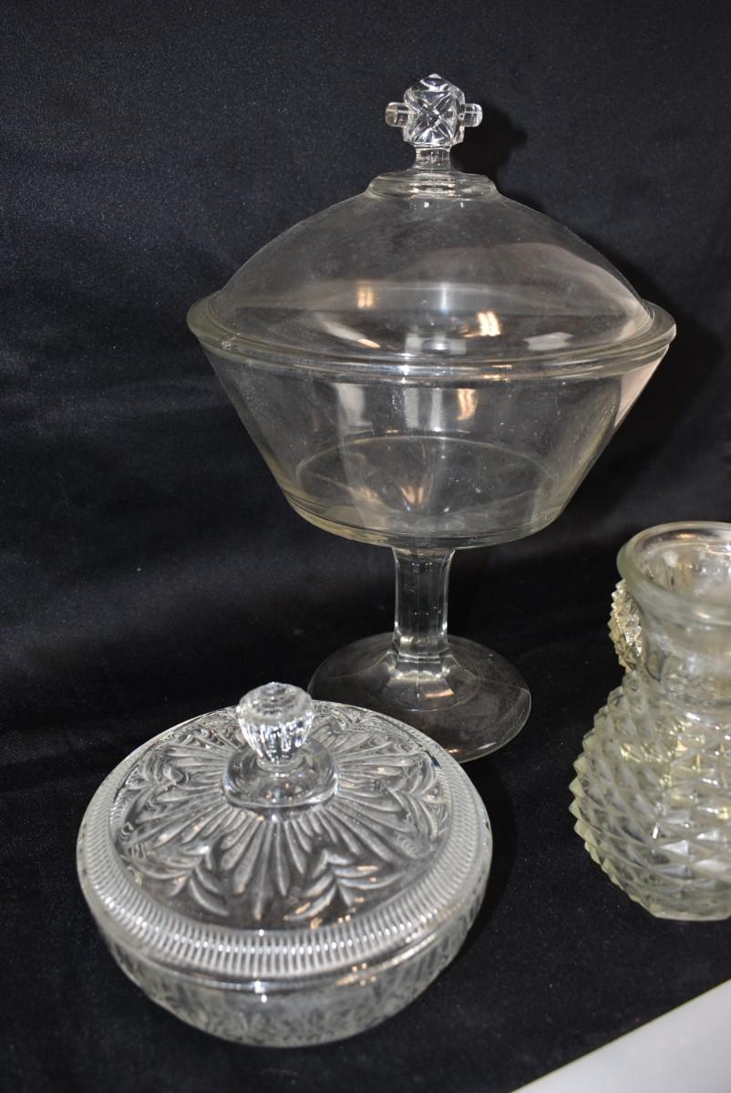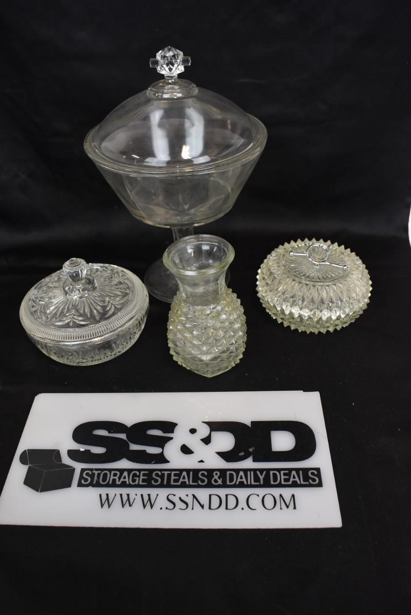 4 pc Glass, 3 Candy Dishes, 1 Vase