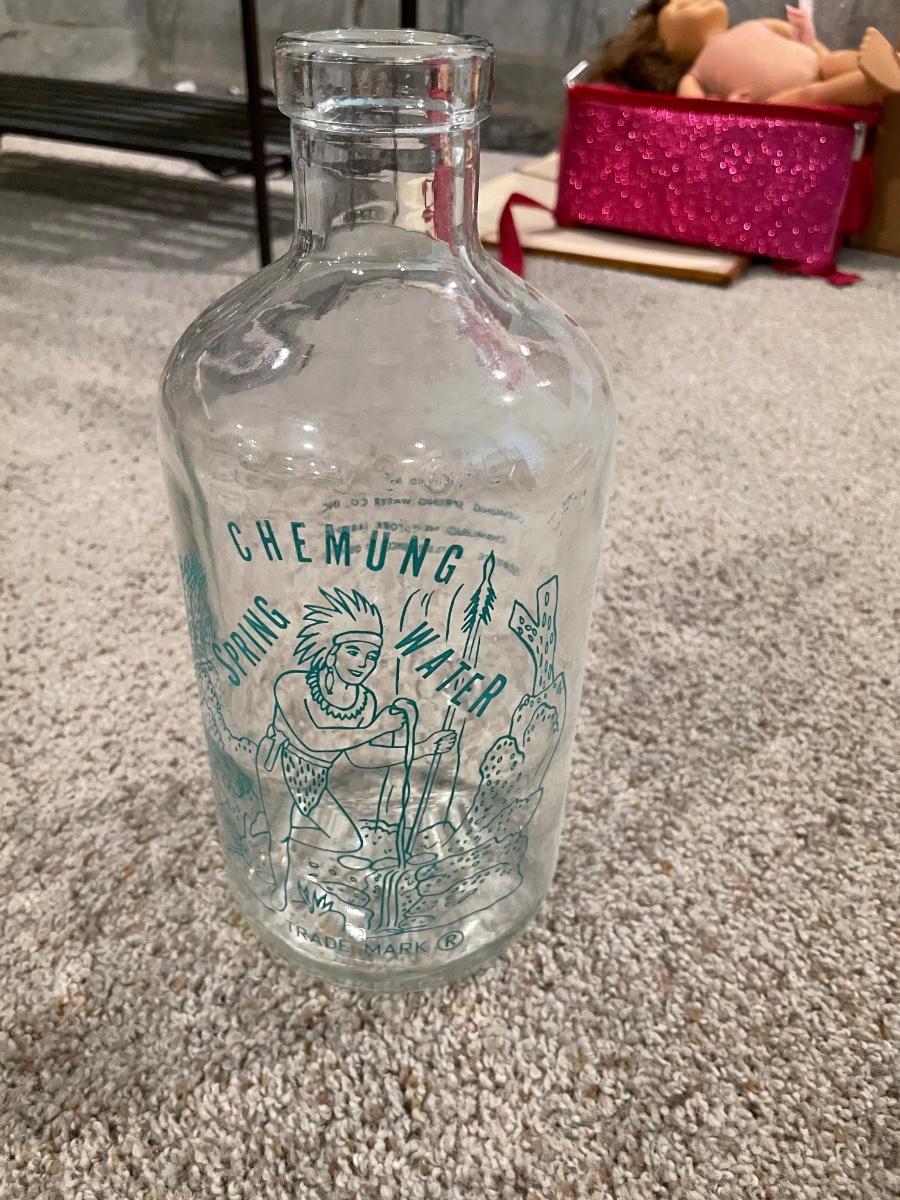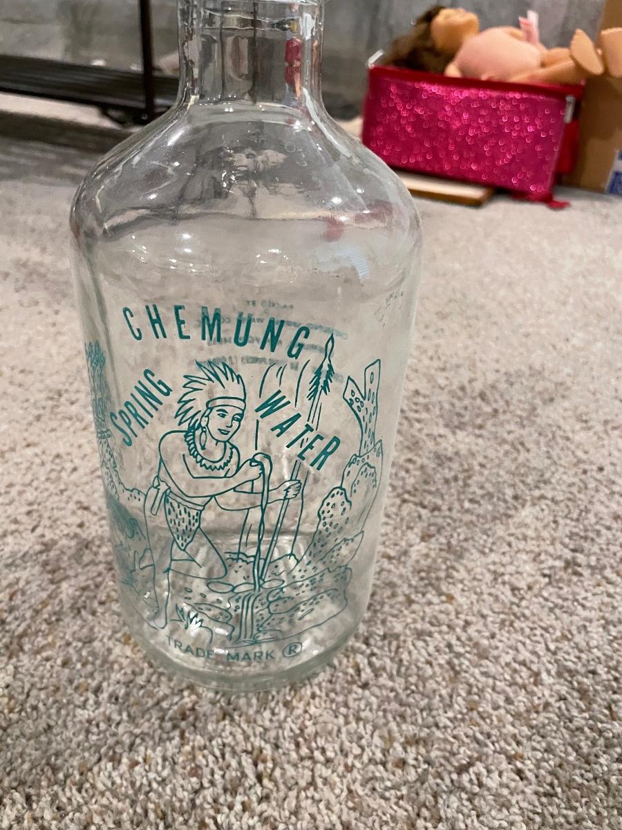 Vintage glass Spring Water Bottle with Chemung Trademark from NY holds 64 oz