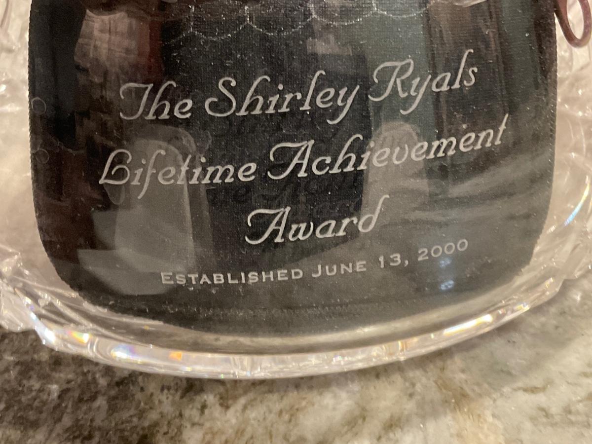 1 of crystal bowl has etching “The Shirley Ryals Lifetime Achievement Award”