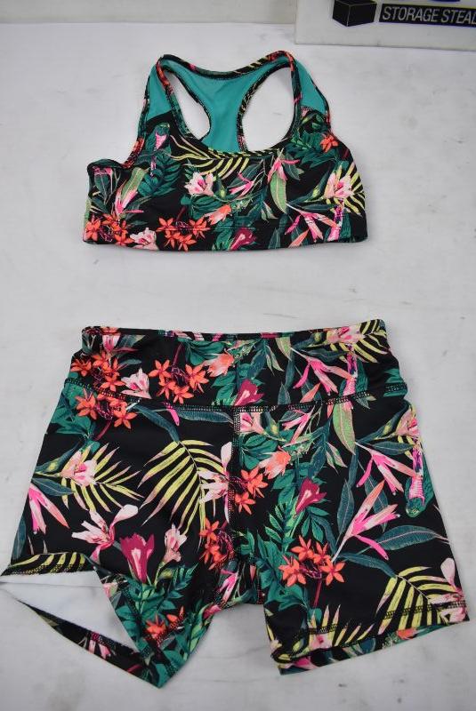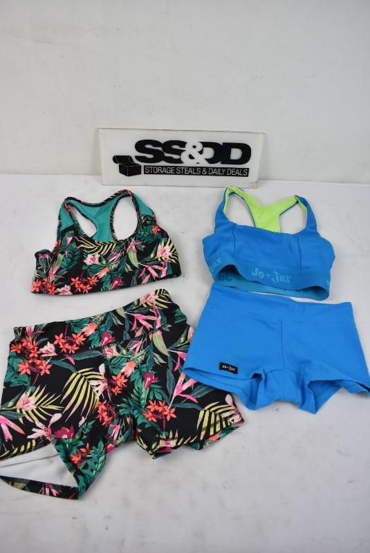 4 pc Gymnastics/Dance Activewear: Jo + Jax Turquoise Set, Child Size Large & Old Navy Floral Set Child Large