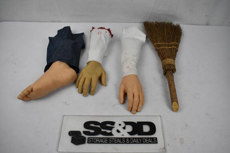 4 pc Halloween Decor: Arm, Arm, Leg, & Broomstick
