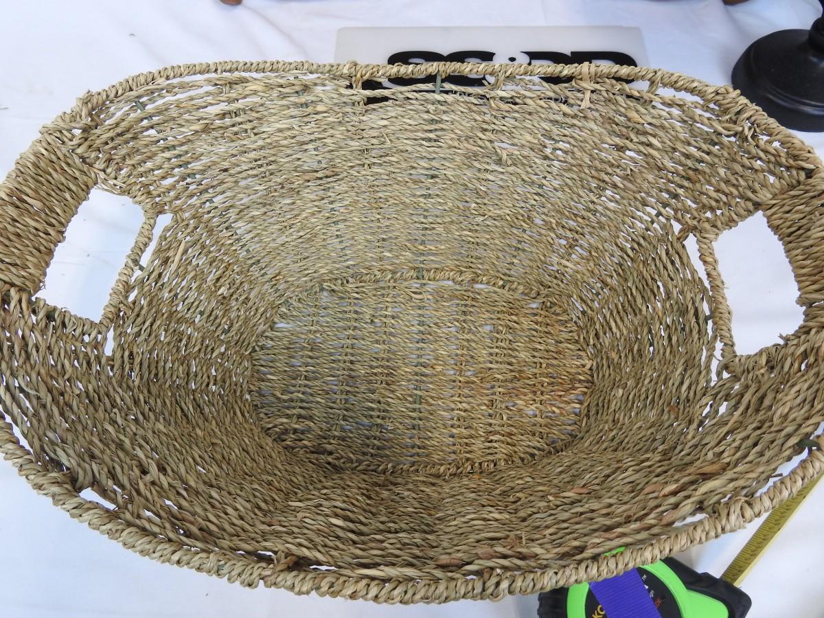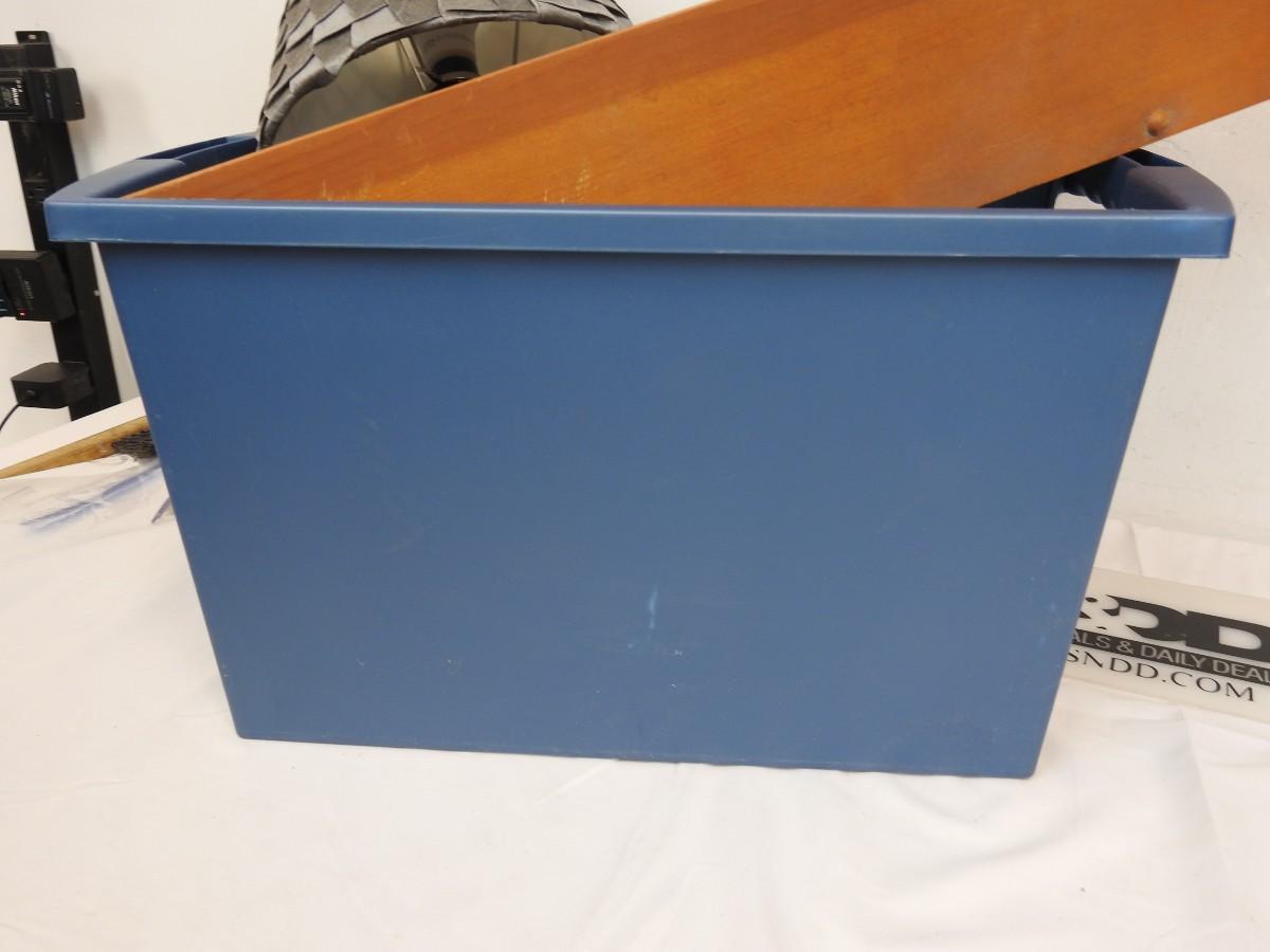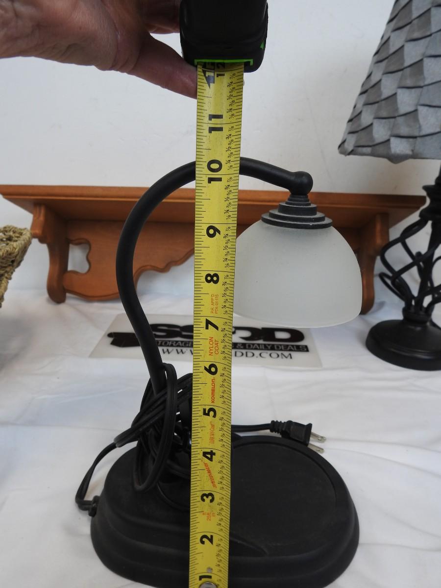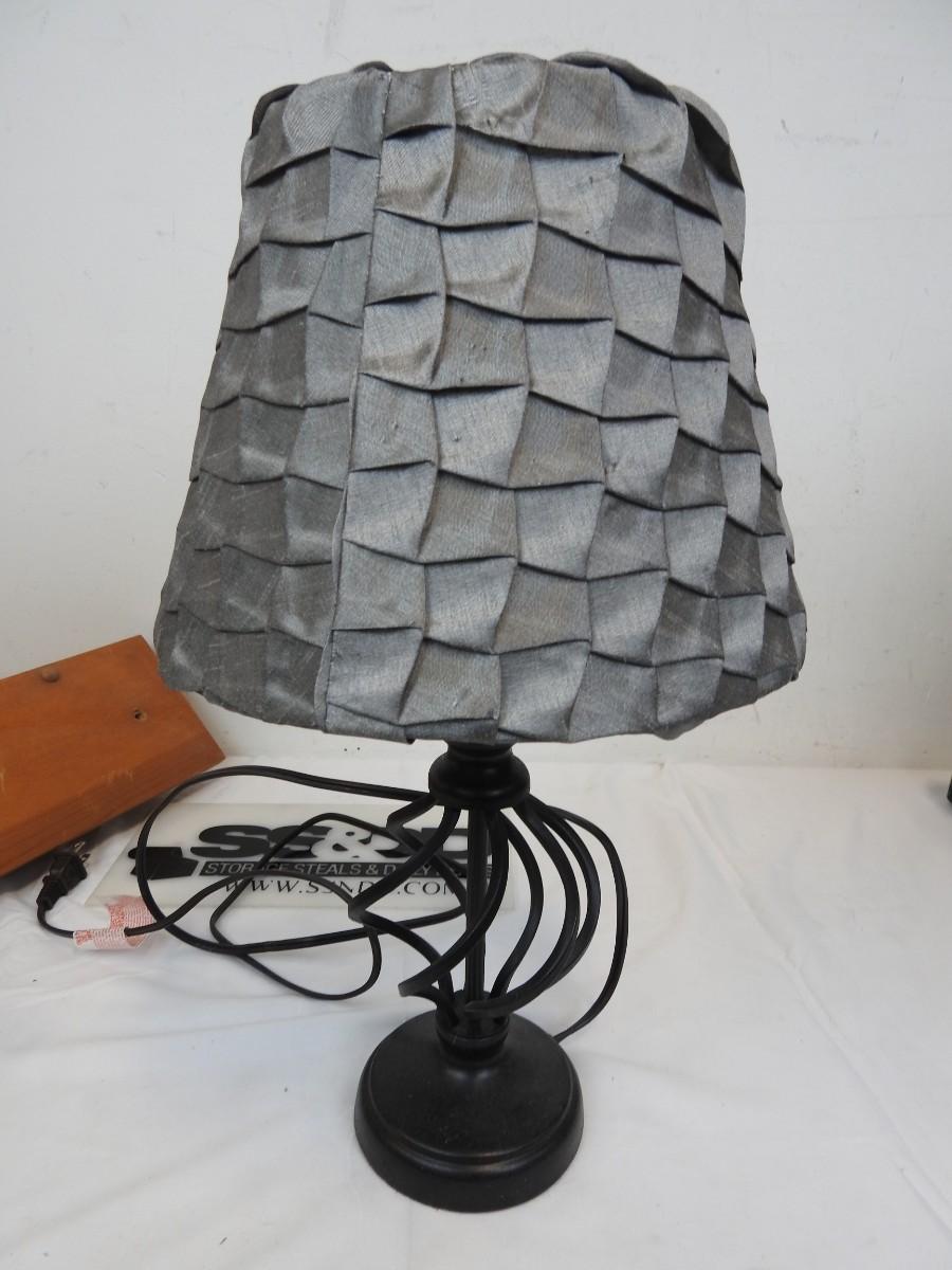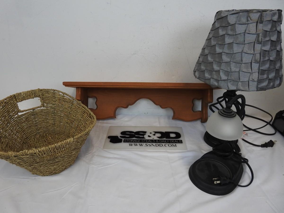 4 Pc Home Decor: Wooden Shelf, 2 Lamps, 1 Basket, Blue Bin Included