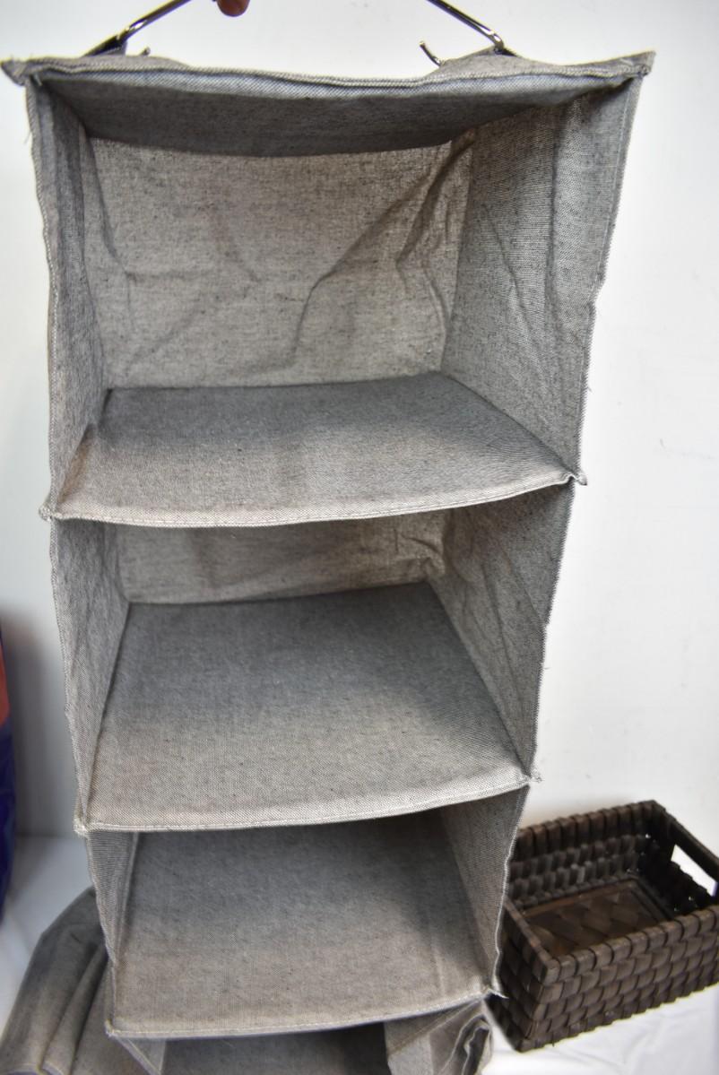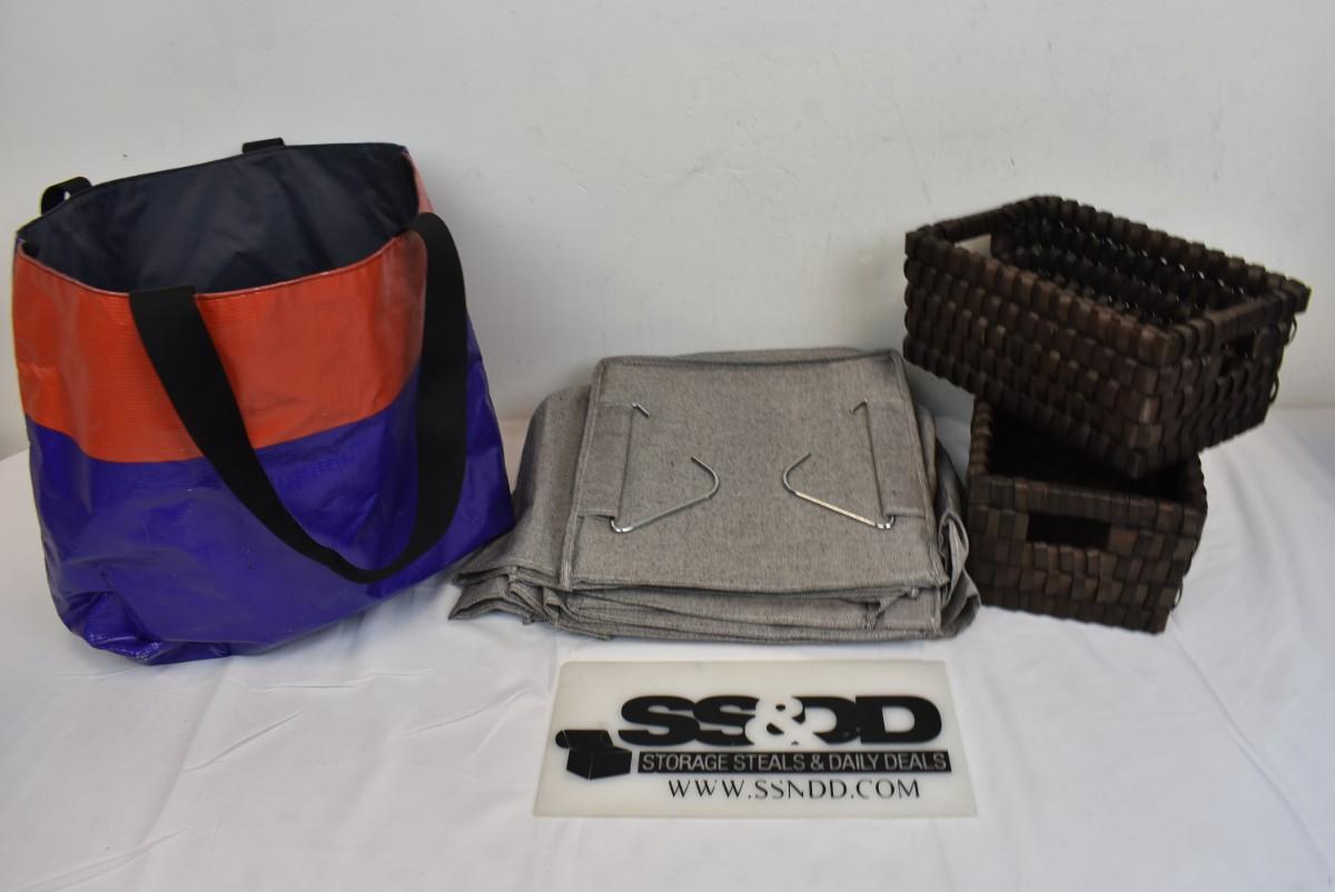 4 pc Home Organization: 2 Woven Baskets, Hanging Cube Organizer, Bag