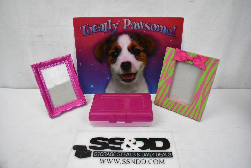 4 pc Kids: 2 frames, 1 dog poster, 1 pencil box