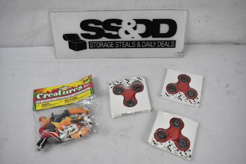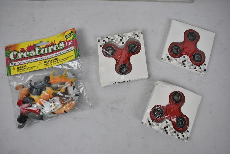 4 pc Kids Toys Lot: Plastic Creatures set of 12 & 3 Fidget Spinners - New