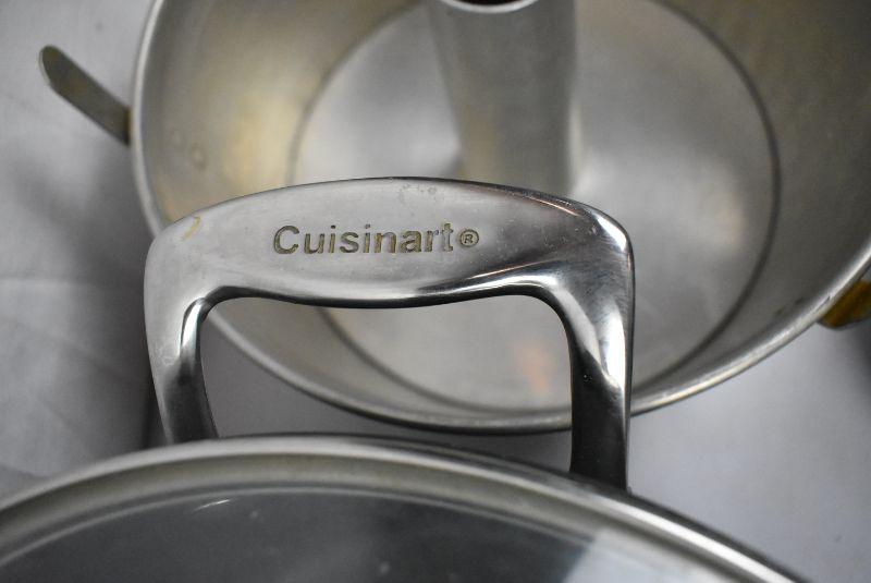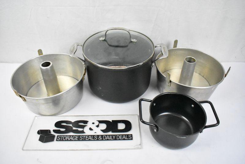 4 pc Kitchen Cooking: Cuisinart Stock Pot with Lid, small pan no lid, 2 bundt cake pans
