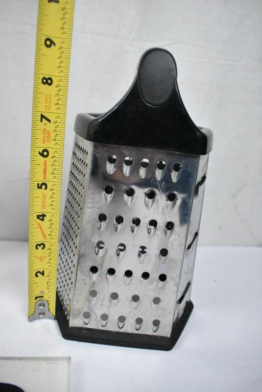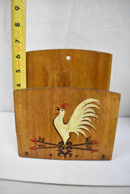 4 pc Kitchen: Rooster Oven, Pyrex Cup, Wooden Napkin Holder, and Cheese Grater