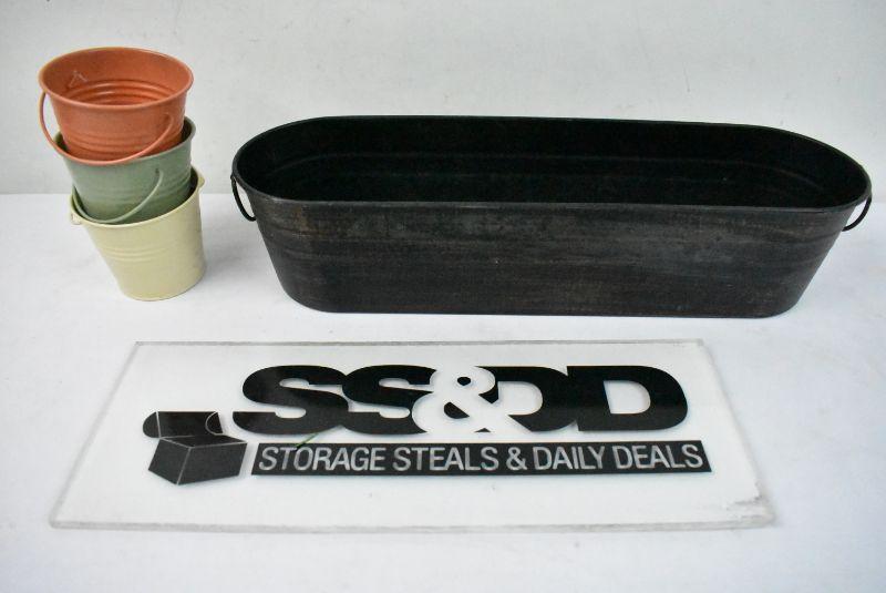 4 pc Metal Tins: Long skinny black, 3 smaller with Citronella in 2 of them
