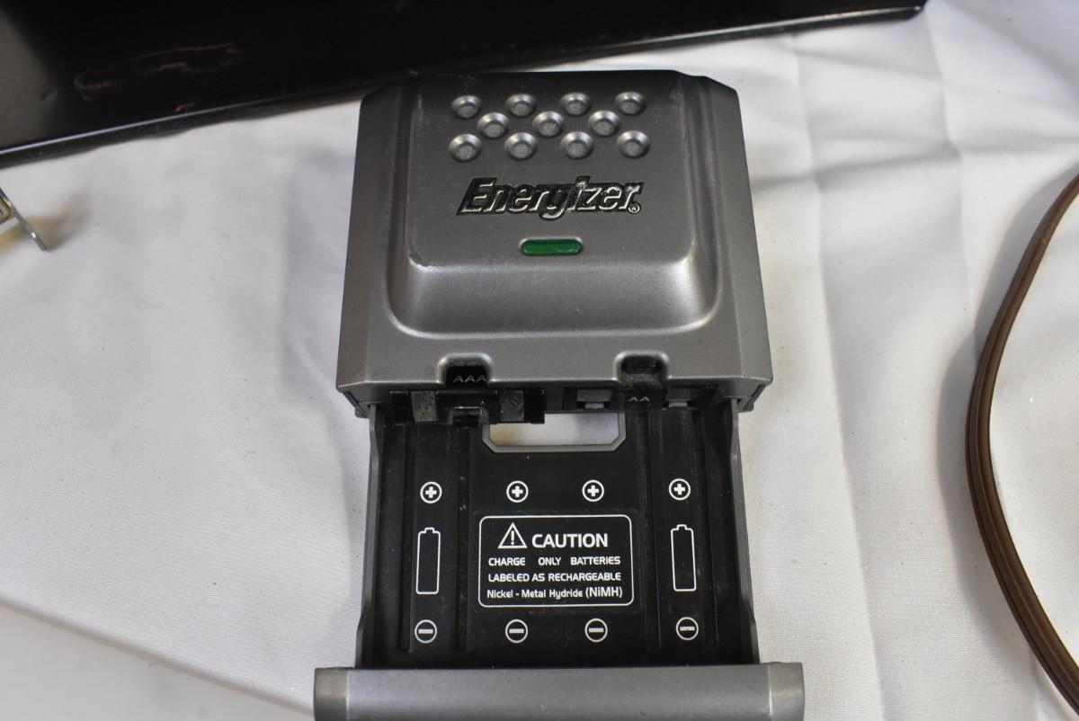 4 pc Office lot: file organizer, Energizer battery recharger, extension cord