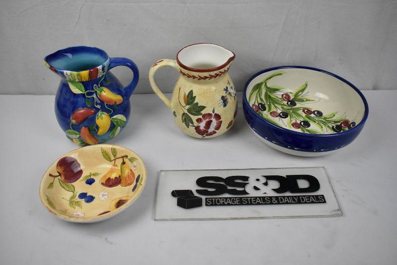 4 pc Painted Ceramic: 2 Bowls 2 pitchers
