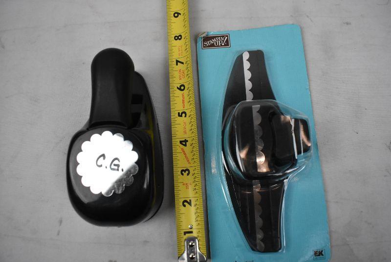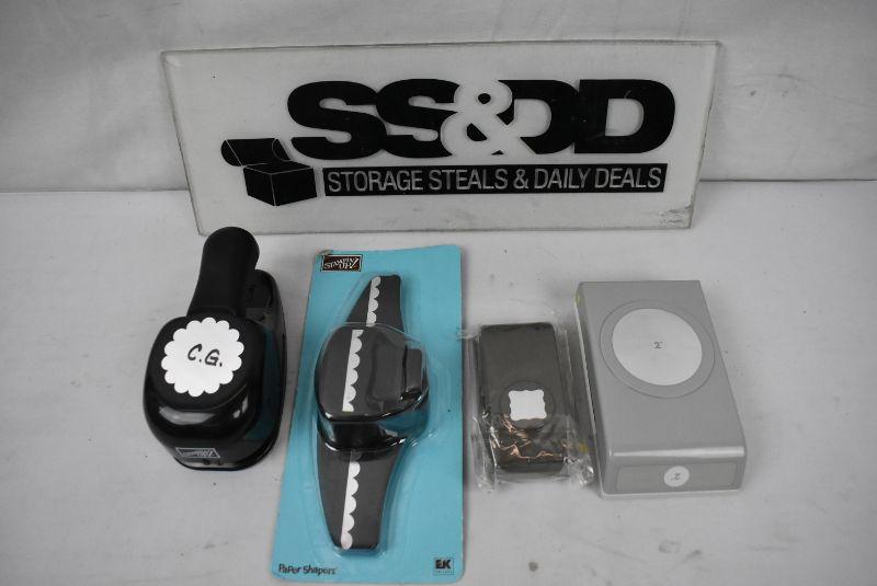 4 pc Paper Punches (2 new 2 used) Scalloped Straight, Scalloped Circle, Fancy Frame, & 2" Circle