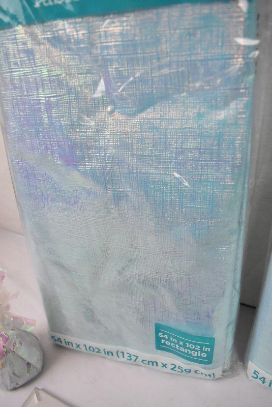 4 pc Party Supplies: 2 Iridescent Table Covers (54"x102" each) & 2 Iridescent Balloon Weights - New