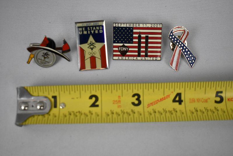 4 pc Patriotic Pins: 9/11/2001, SLC FD Olympics 2002