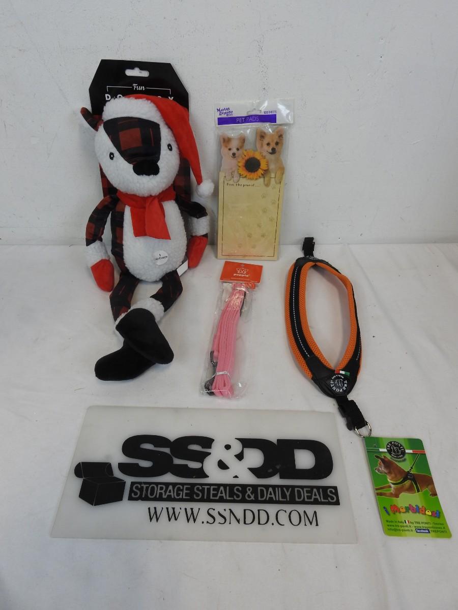 4 pc Pet Supplies: Dog Toy, Medium Leash, Notepad, & Harness - New